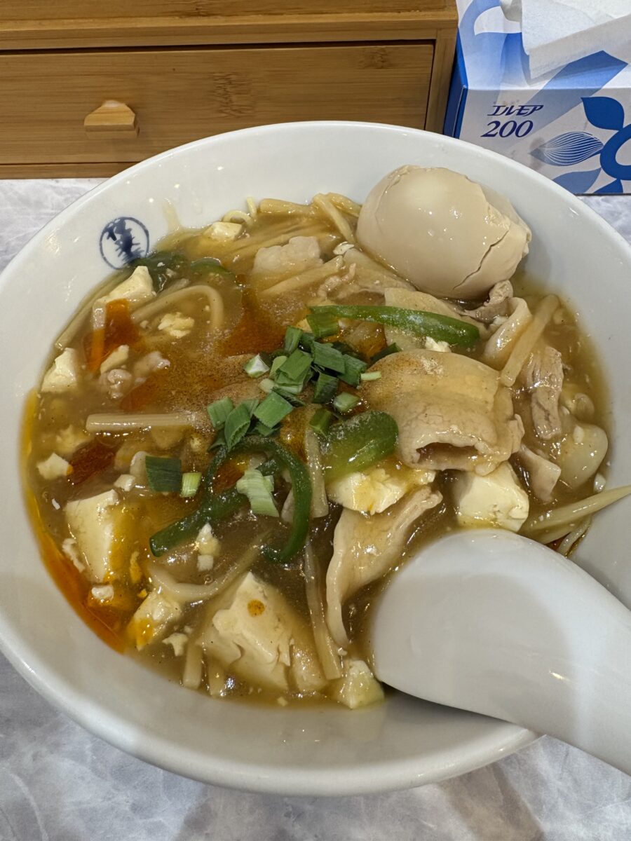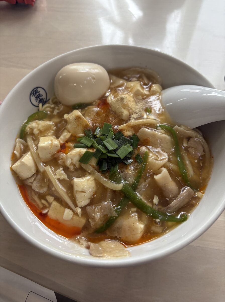 10回連続・・・スーラーまぜそば大辛(名前はまぜそばですが餡かけスープが入っています)