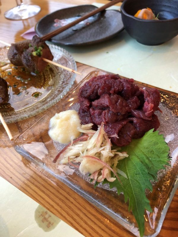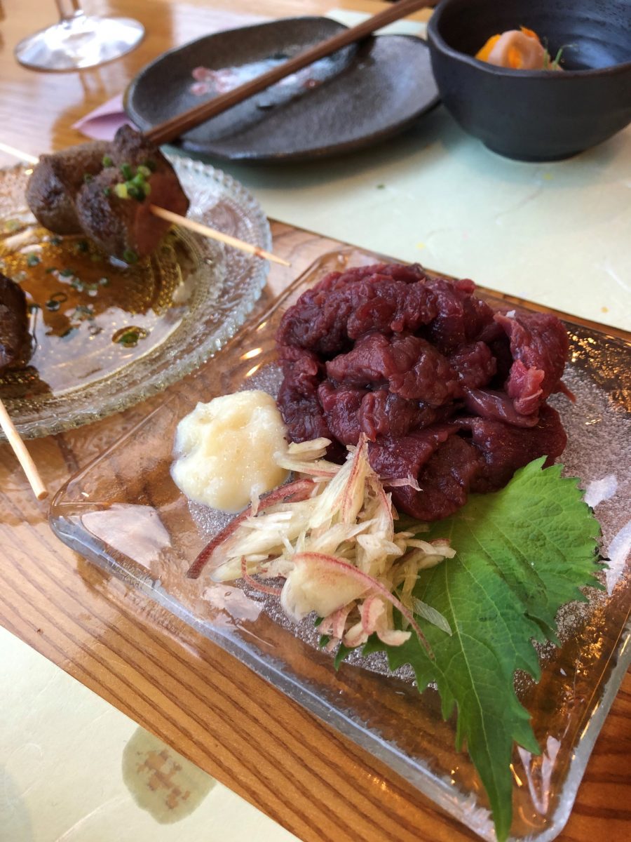 そして「秋田県産の馬刺し」に旬のミョウガとニンニクを添えて・・・