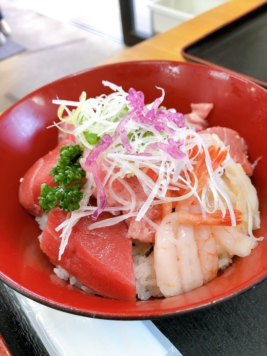 小松まぐろ専門店の「みんな丼」(大トロ・中トロ・赤身・甘エビ・ネギトロ)