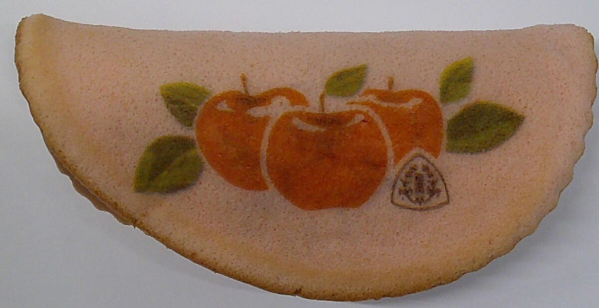 今回は味以上に気になるところがスポンジに描かれたリンゴの図柄と校章です。ここまでできるようになったのかと思いました。
