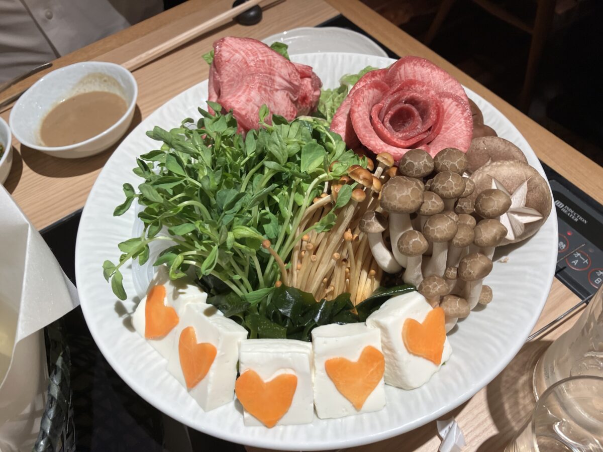 バラ盛りといえばババヘラアイスですが牛タンでありました。きれいにバラが咲いています。