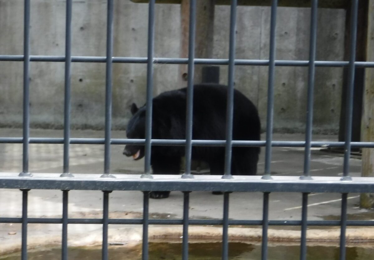 大森山動物園でクマが木にしがみついているニュース映像がありました。