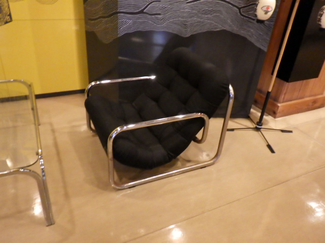 1階にある椅子に座ると深く包み込まれる感じがします。ガラスのセンターテーブルがあり対になって置いています。