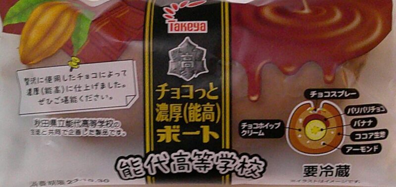 先月、バナナボートの姉妹品が新発売されたなかに能代高等学校の『塩バチョコボート』がありました。