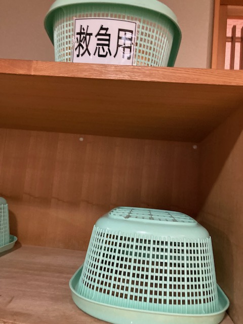 ふと見上げると、1個の脱衣かごに「救急用」の文字が。。。。