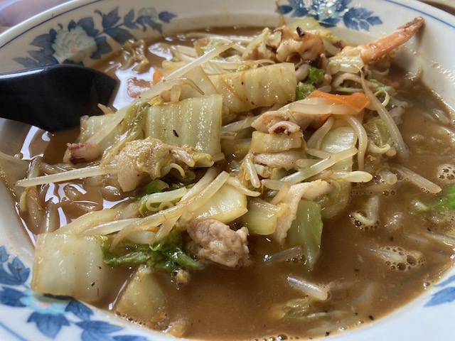 味噌ちゃんぼんは細麺に大量の魚介や野菜、腹いっぱいです