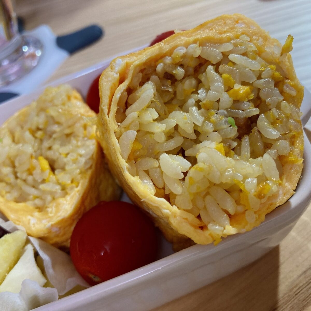 イメージではもっと、チャーハンの割合が少なくて、卵が厚い予定でした!