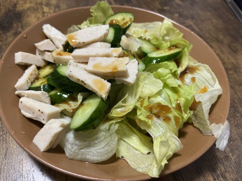 レタスときゅうりとサラダチキンを乗せただけですが…