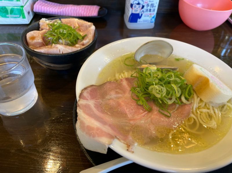 朝仕様の量のラーメンとレアなチャーシューご飯の量のバランスが丁度いいです。