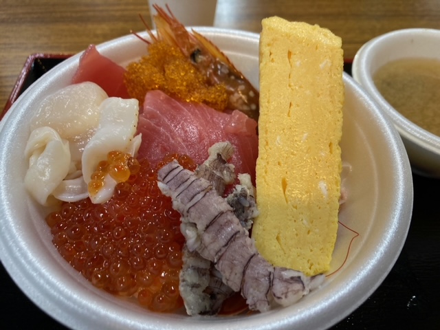 ご飯を買って、それぞれ好みの刺身などをのっけてもらいます
