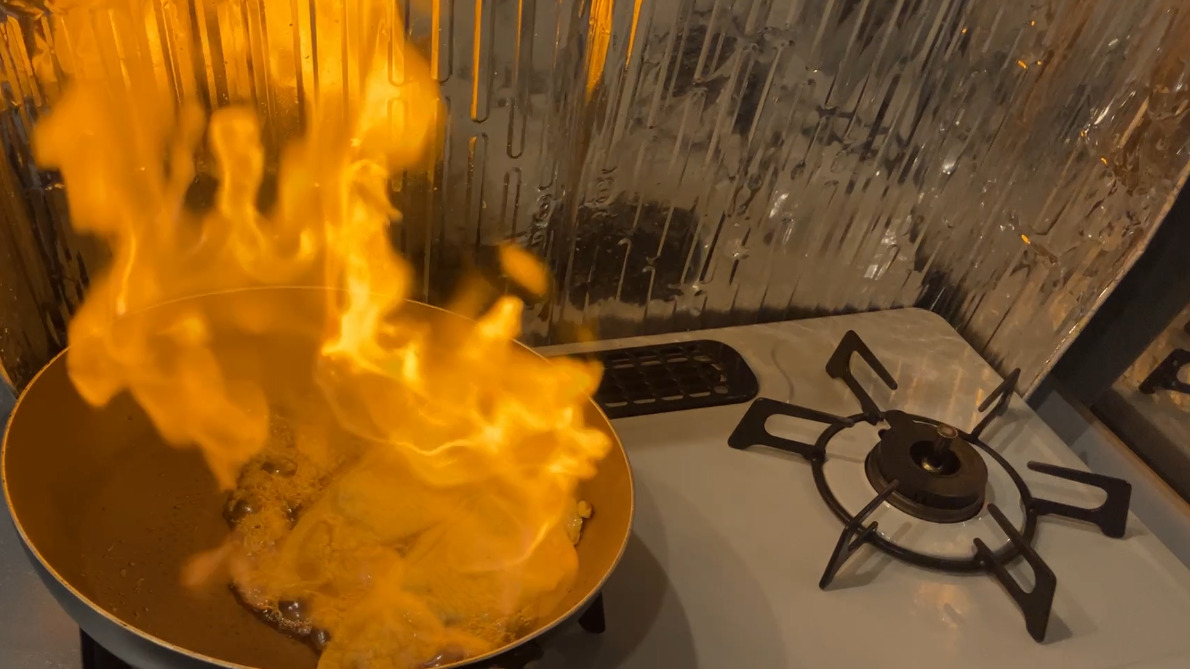 その代わりに火が1メートルくらい上がって、全部の火災報知器が鳴りました。