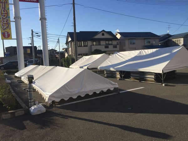明日は毎月恒例の「仁井田朝市」の日ということで、今日の15時から社員全員で明日のテント設営を行いました。