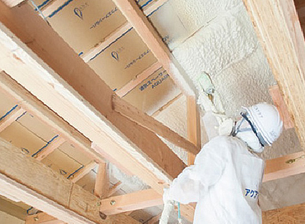 硬質ウレタンフォームを現場で発泡するので複雑な構造の住宅も