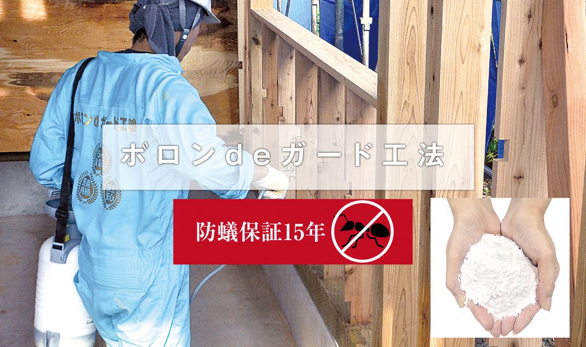 シロアリ保証が15年付いています!被害が生じた場合には、保証約款の規定に基づき、修理費用を補償し無償で再施工するので安心です。
