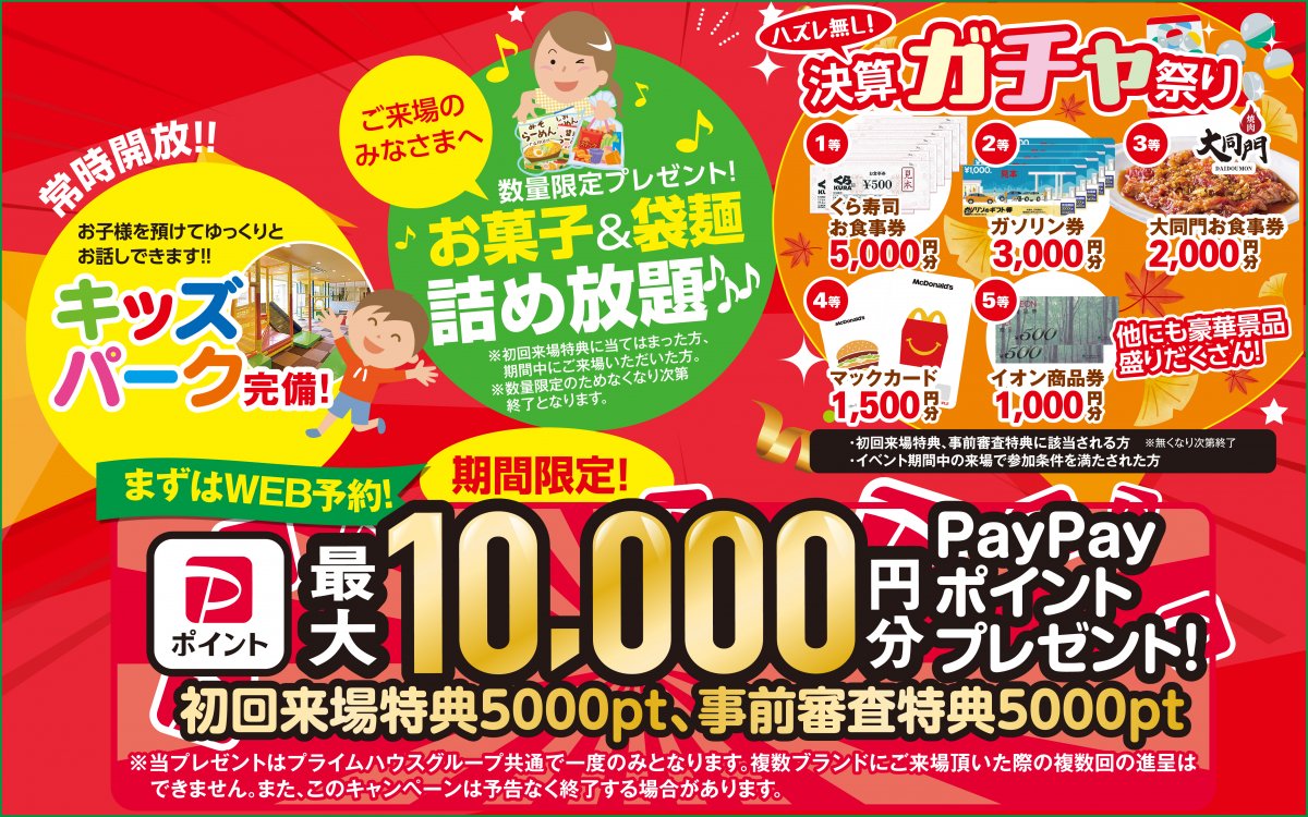 ●本キャンペーンは、他のキャンペーン・割引特典との併用はできません(※現在開催中のキャンペーン:「プライムチャンス(完成前物件)」「住宅ローンサポート(完成後物件)」「紹介キャンペーン」)
