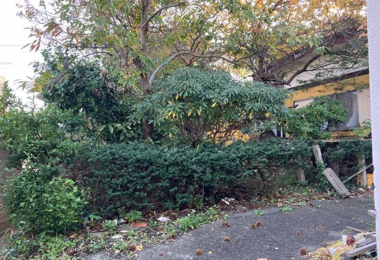 隣地の会社は登記簿住所に存在しないため、境界確認に難あり