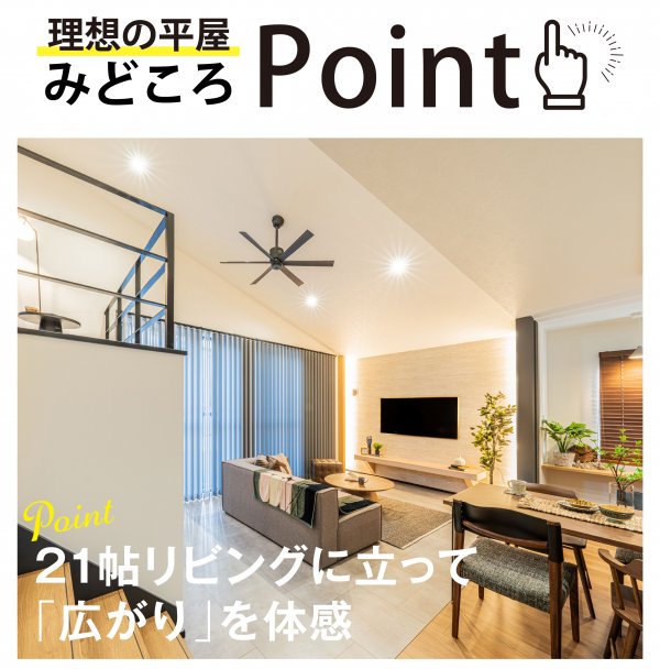 家族の会話が自然と弾む、ゆったりとした開放リビング。