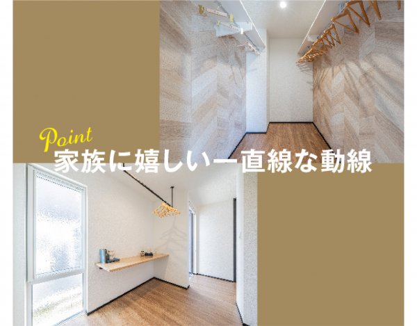 脱衣室から洗面、ランドリー、ファミリークロークへと続く、家事が一度で完結する快適な動線。