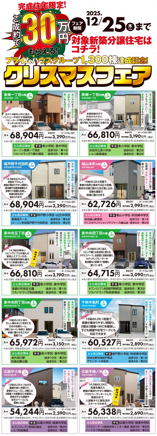 期間中、対象の新築分譲住宅購入で、