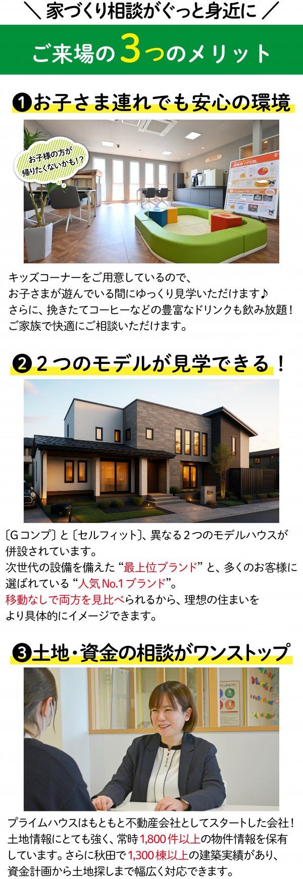 AKTハウジングセンター内に、プライムハウスの人気2ブランド【セルフィット】と【Gコンプ】のモデルハウスが並んで誕生!