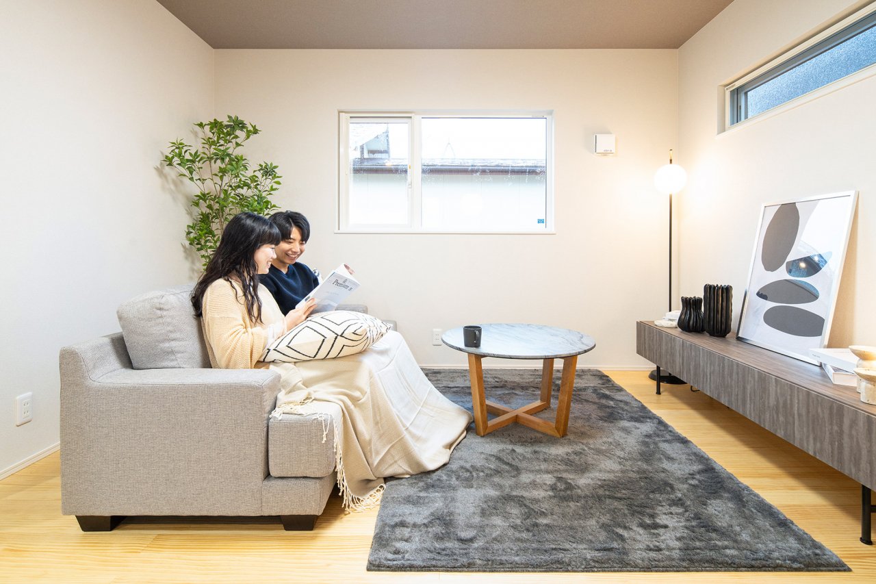 白壁と木目のやさしい組み合わせで、心が落ち着くナチュラルテイストの寝室。肌触りの良い床材を採用しており、素足でも心地よく過ごせる空間に仕上げました。6帖の広さは、ベッドを置いてもゆとりがあり、1階にあることで生活動線にも配慮されています。ゆったりとした眠りの時間をサポートする、静かなプライベート空間です。