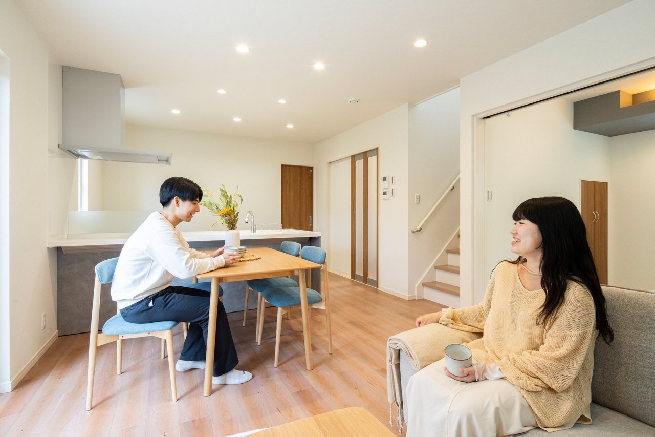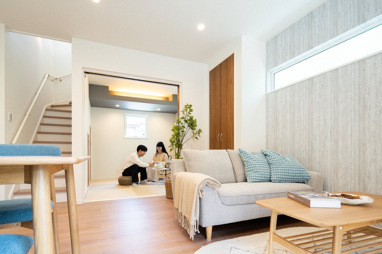 和室から眺めるLDKは、暮らしの動線とつながりを感じられる設計。