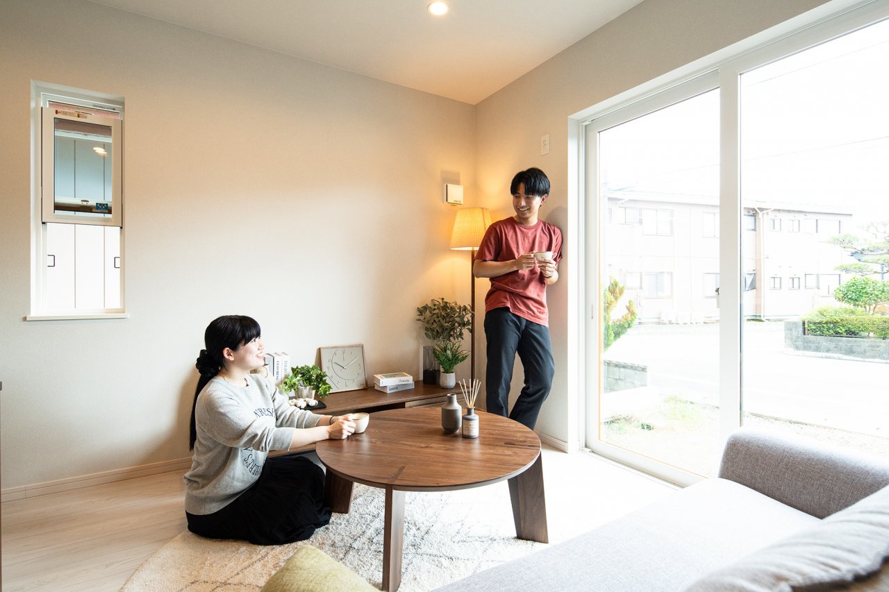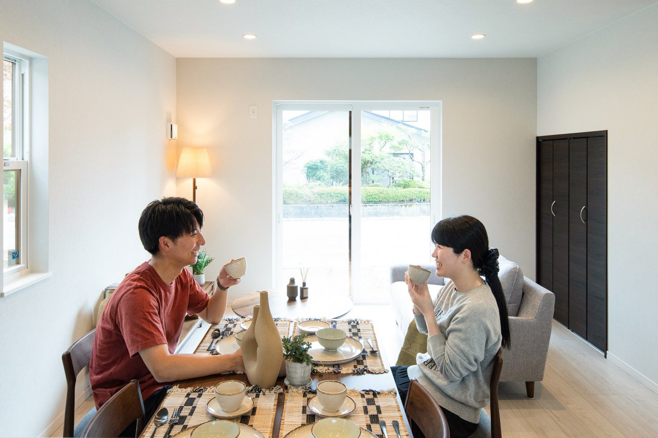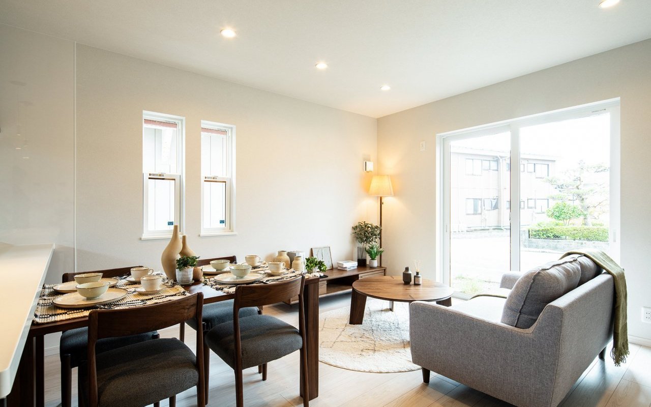 家具一つひとつが主役になれるよう選定されたインテリア。リビングとダイニングの視線が自然につながり、家族の時間がゆるやかに流れる空間に仕上げました。