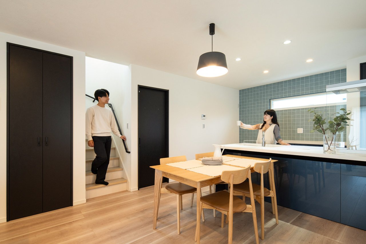 黒とブラウンの組み合わせが印象的なシンプルモダンな外観。凛とした佇まいの中に、住まい手の個性と落ち着きが感じられます。無駄のない美しさが、時間と共に味わいを増していきます。