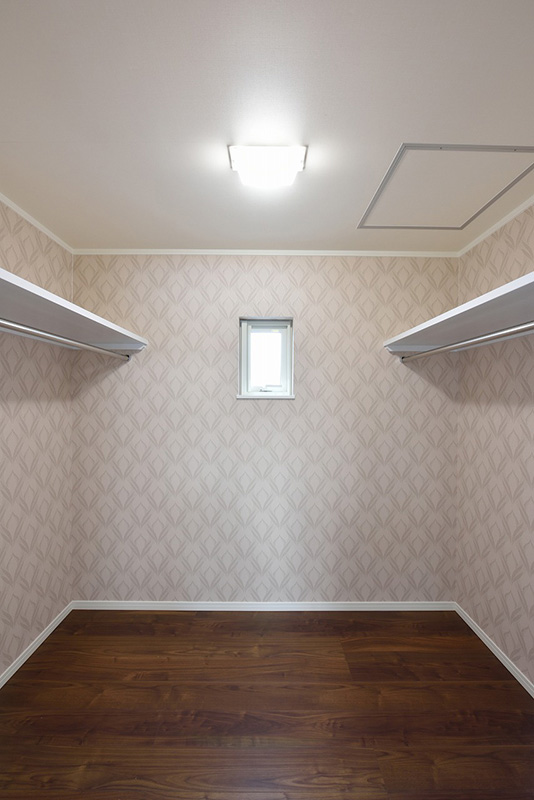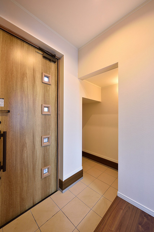 玄関から入ってすぐ左手には、まるで隠れ家のような収納スペースを設けました。 コンパクトだからこそ収納力にこだわった、長く住んでも飽きのこないシンプルなデザインの住宅です。