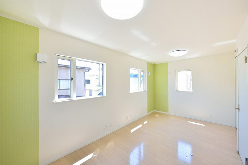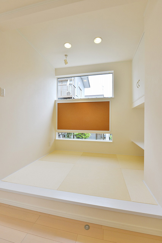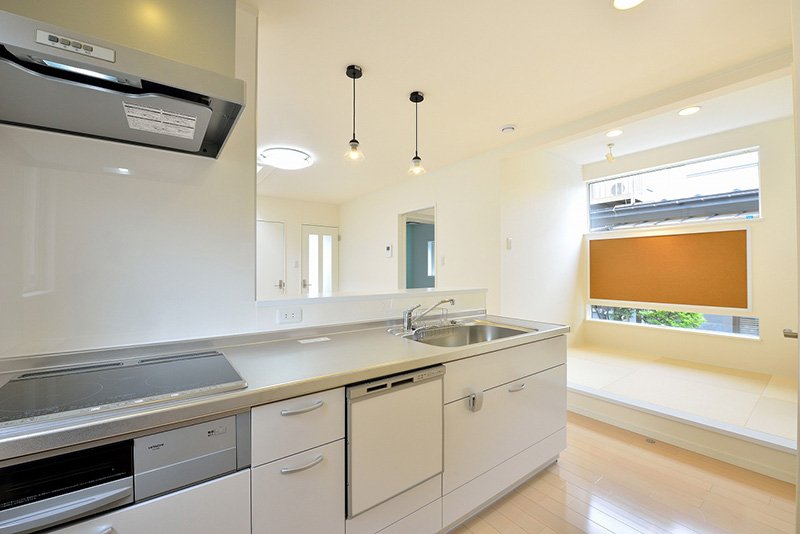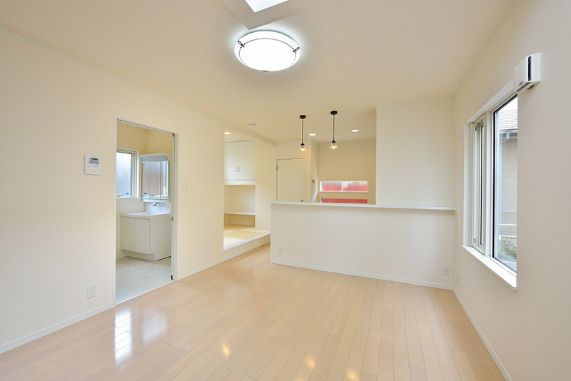 畳スペースもただの和ではなく、明るくさわやかな太陽の光が似合う和をご提案しています。 リビングからも見えるキッチンの手元灯はペンダントライトでさり気ないおしゃれをプラス。 小さいうちは兄弟でひとつの部屋を使用、大きくなったら仕切りを入れてふたつの部屋に大変身します。