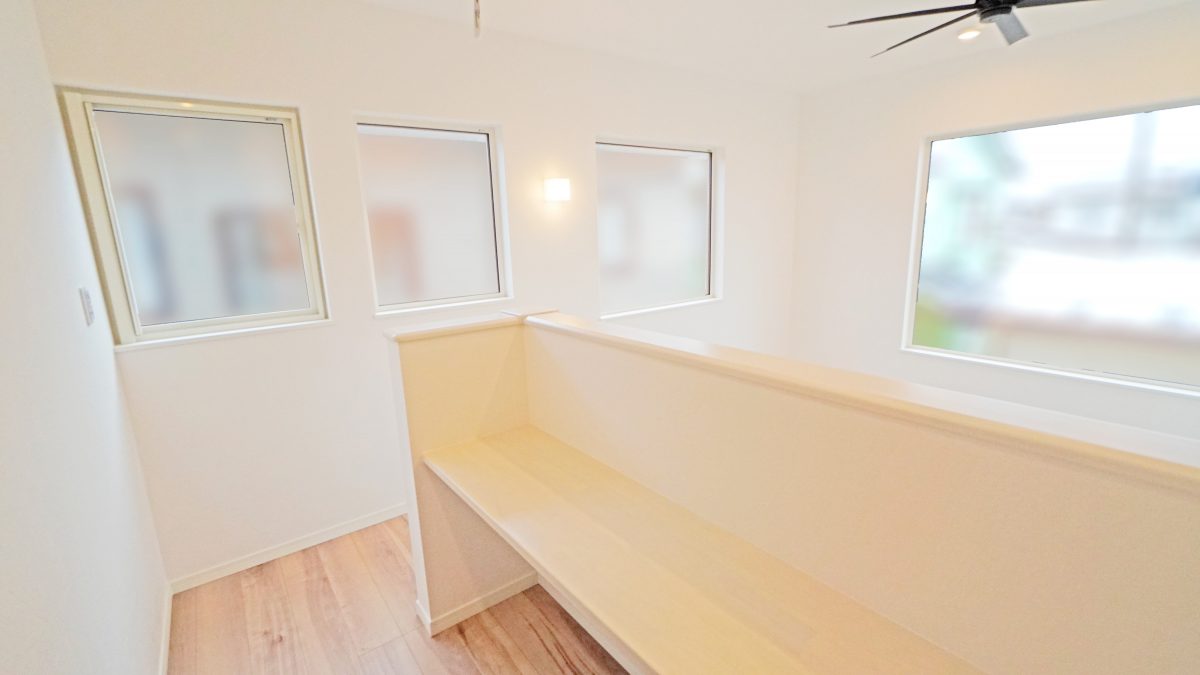 2階ホールには洗濯スペースを確保、カウンターを取り付けてちょっとした作業スペースに。