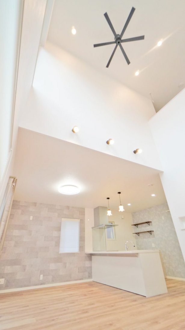 リビングにある大きな吹き抜けは、気密性がバツグンのため、窓を多く取り付けても1年中快適に暮らせます。