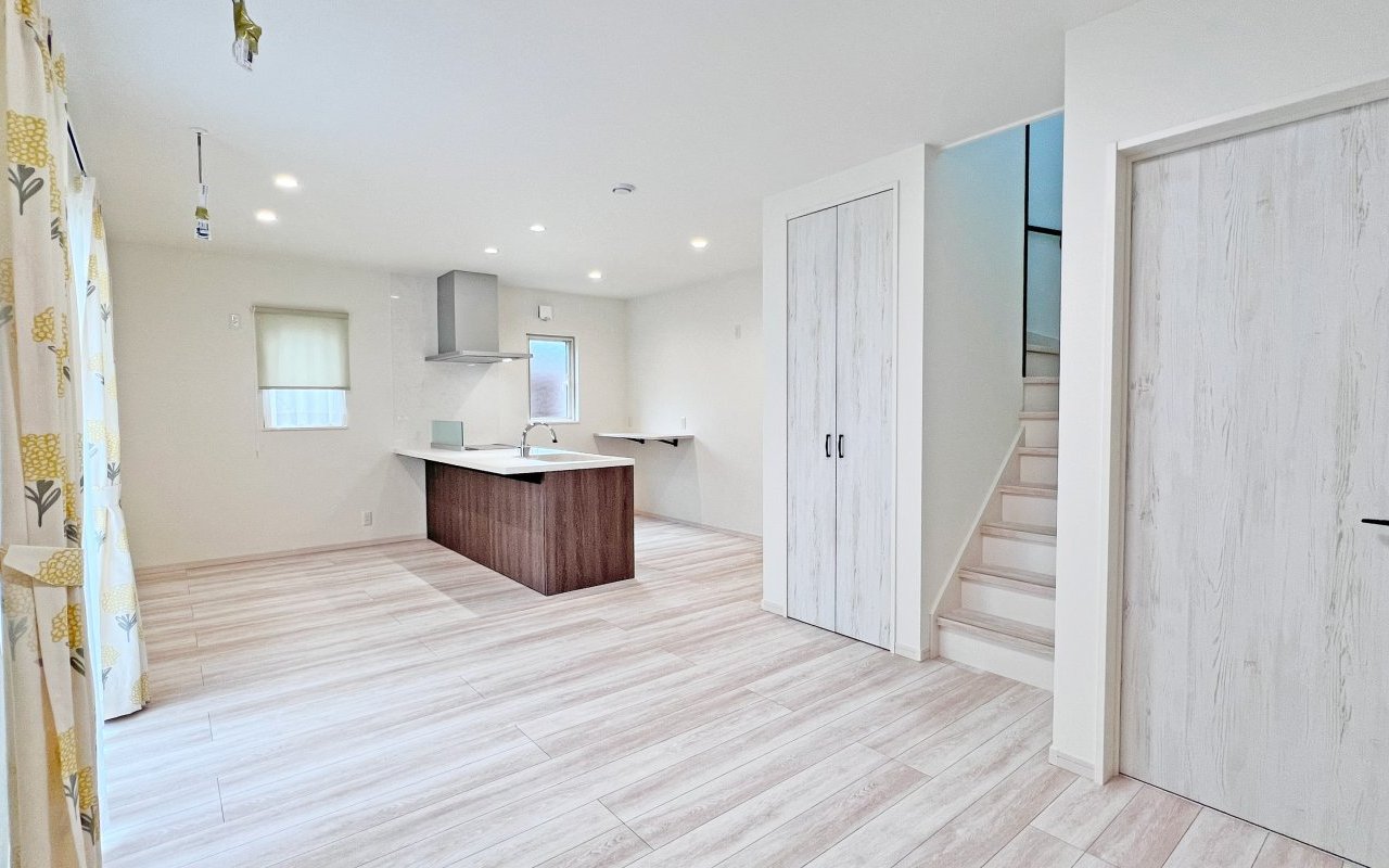 ダイニングとの区切りをつけやすい間取りで、リビングもダイニングも窓に面しているため、明るく開放感があり、キッチンにも光が届きやすくなります。