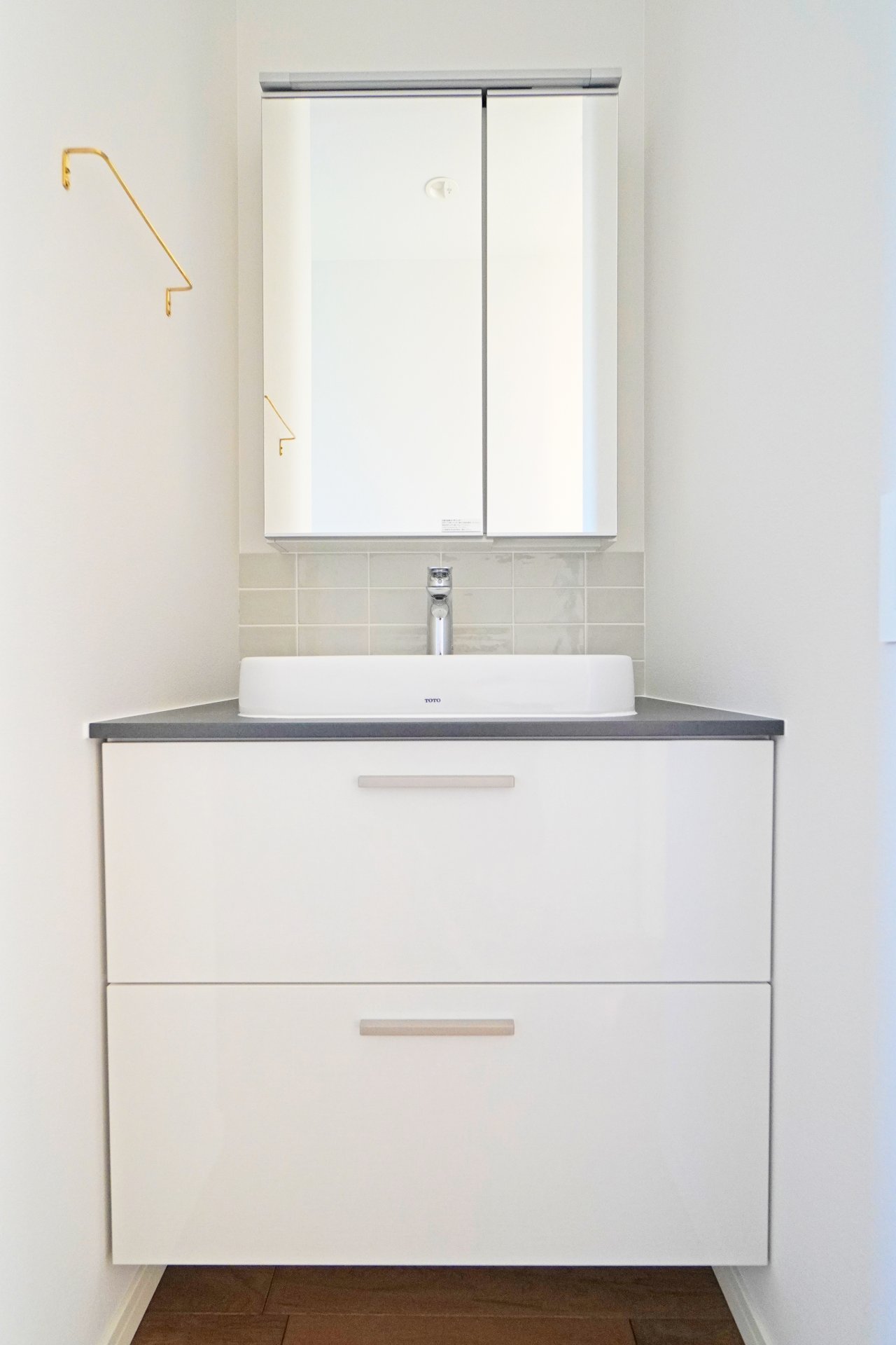洗面台を取り付けないことで、脱衣所と洗面台を別々の人が同時に使う事が出来ます。また、来客時にプライベートな空間を隠せるのもメリットです。